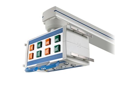 - Die Bedienelemente am Stativkopf und ein farbcodiertes Bremssystem ermöglichen die intuitive Positionierung der Deckenversorgungseinheit.